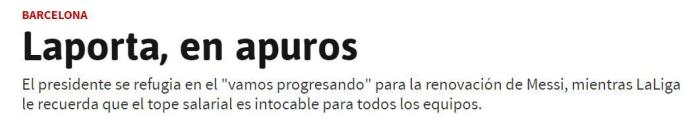 阿斯报: 续约梅西不顺利, 拉波尔塔已有些紧张