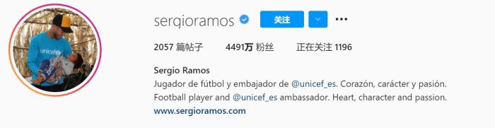 今天合同正式到期后,拉莫斯删除了自己Instagram简介中“皇马队长”和“西班牙队长”等内容,简介变为“足球运动员、联合国儿童基金会大使”。