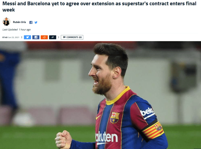 直播车讯 据进球网记者Rubén Uría报道,巴萨仍未向梅西开出正式的续约合同。
