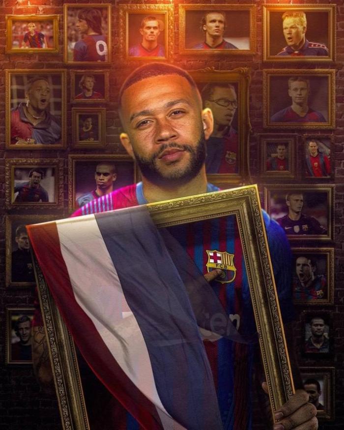 今天巴萨官推发了一张欢迎德佩来到巴萨荷兰球员大家庭的图。