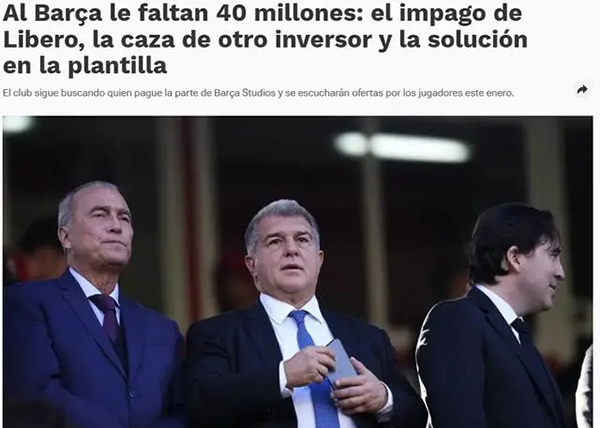 巴萨正努力从德国投资基金 Libero Football Finance 持有的巴萨工作室29.5%的股份中获得约4000 万欧元。他们现在正在争分夺秒地寻找另一个投资者,虽然已经与潜在投资者进行了接触,但俱乐部承认还有很长的路要走,并对短期内能否满足他们的资金需求表示担忧。
