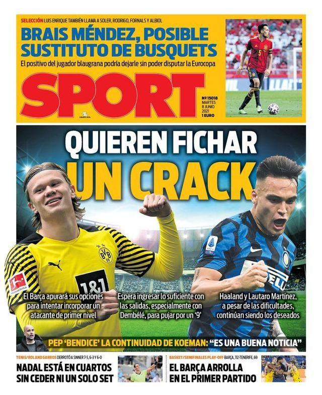 直播车讯据《每日体育报》今日头版消息,巴萨想引进一名顶级前锋,劳塔罗和哈兰德仍然是他们的目标。
