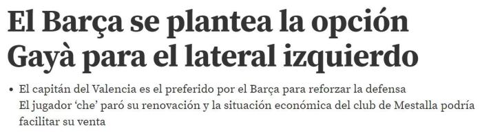 《世体》还表示,巴伦西亚的财政状况不佳,他们在去年已经出售了老队长帕雷霍和科克兰等人,今年他们还可能出售重要球员,其中就包括新队长加亚。