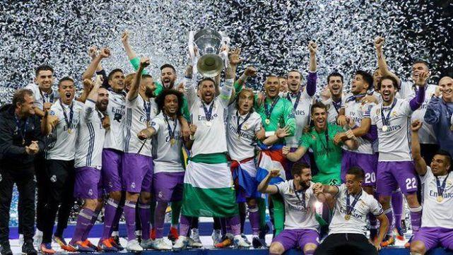 来源:直播车06-05 16:05直播车讯 北京时间6月5日,西甲豪门皇家马德里官方账号发文纪念2017年的这天赢得欧冠奖杯。皇马官方账号还晒出了一张当时夺冠的庆典图。图中举起大耳朵杯的皇马队长拉莫斯处于C位,其他皇马球员则分居两侧、振臂欢呼。