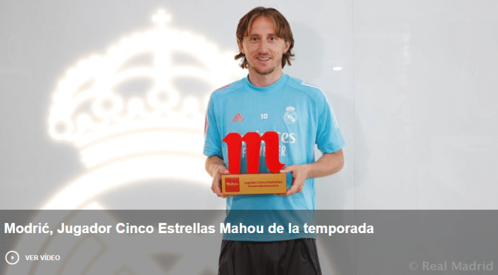 官方: 莫德里奇当选皇马赛季最佳球员