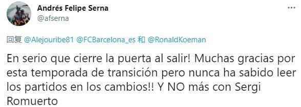 直播车讯巴萨客场3-3战平莱万特,争冠时刻再次丢分,球迷在官推下留言希望科曼下课。