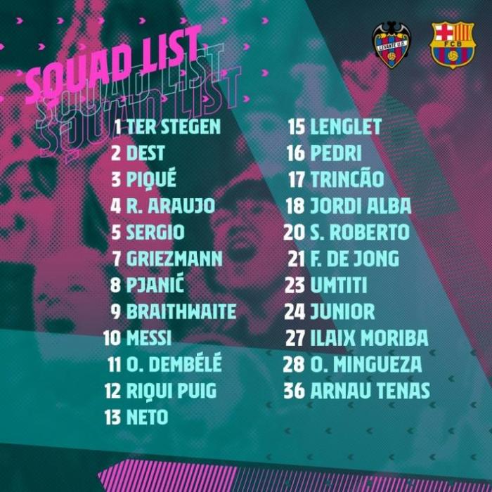 巴萨大名单如下:
