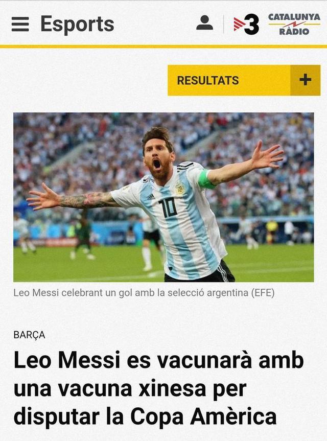 直播车讯北京时间4月30日,据TV3消息,为备战今夏打响的美洲杯赛事,梅西将在本赛季结束后接种中国生产的新冠疫苗。