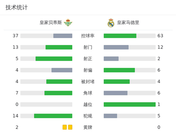 皇马1-1贝蒂斯 贝林厄姆14场12球皇马3连胜终结