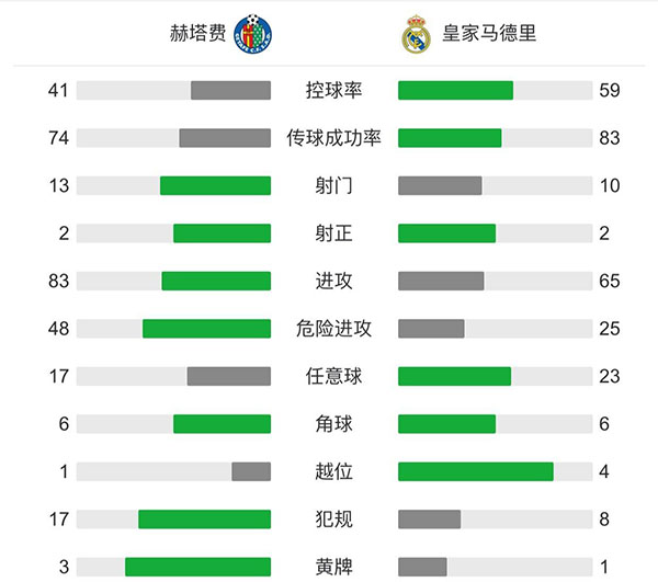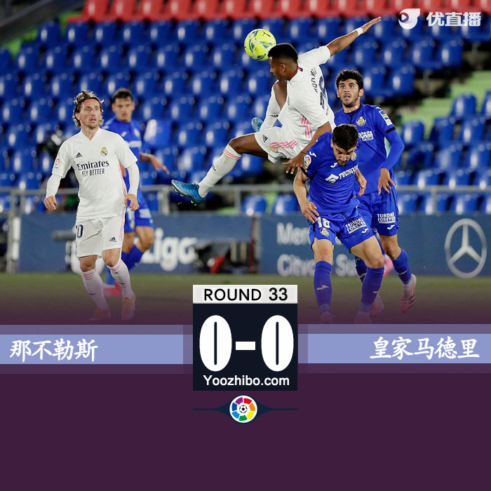 全场比赛结束,皇马客场0-0战平赫塔费。