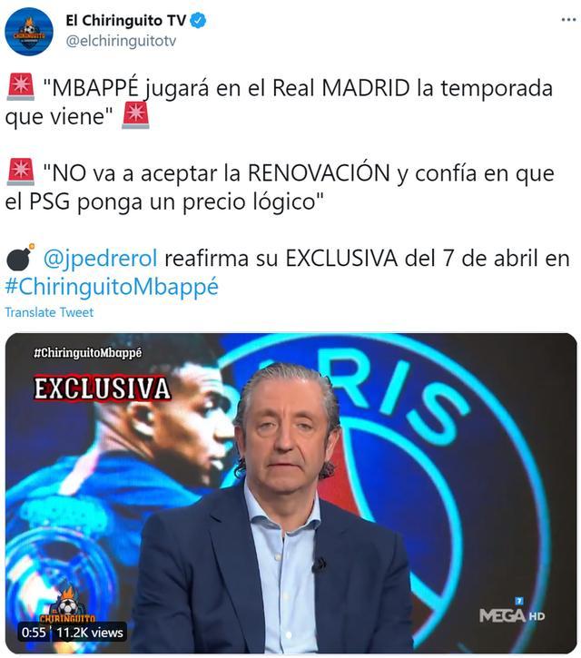 六台表示,姆巴佩下个赛季就将前往皇马踢球,他会拒绝巴黎开出的续约合同。