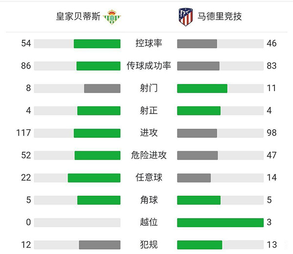 全场比赛结束,马竞客场1-1战平贝蒂斯。