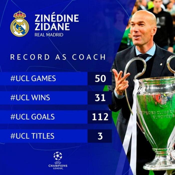 本场比赛是齐达内主帅生涯带队参加的第50场欧冠比赛,在此期间,他赢得31场比赛,球队打进112球,夺得了3座欧冠冠军。