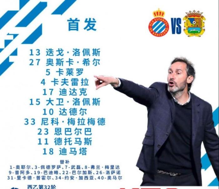 西班牙人vs富恩拉布雷达首发: 武磊替补待命