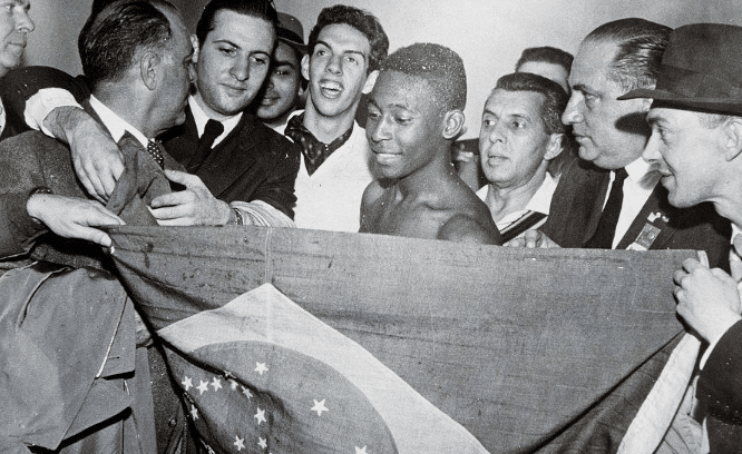 接下来就是半决赛场贝利23分钟的时间里上演帽子戏法,那场比赛巴西队以5-3击败高卢雄鸡法国队,强势挺进决赛。到了世界杯决赛对阵的是东道主瑞典队,巴西队再度轰进5球,而首度参加世界杯的贝利梅开二度,两场比赛他一个人就打进5球,巴西队第一次获得世界杯冠军,荣膺世界杯最佳球员的荣誉,当时的贝利年仅17岁。