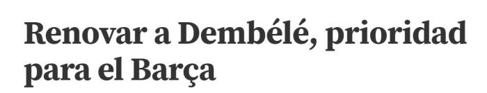 《世体》表示,巴萨此前想与登贝莱续约是担心球员合同即将到期,其他俱乐部会借此压价,现在想与登贝莱续约,动机已经完全不同。
