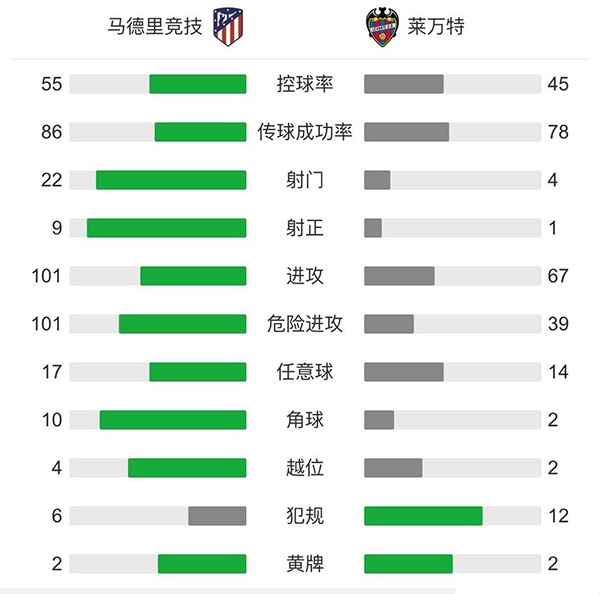 最终,马竞主场0-2不敌莱万特。