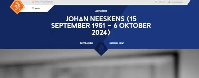直播车讯荷兰足协官方发布讣告,确认荷兰足坛名宿内斯肯斯去世,享年73岁。
