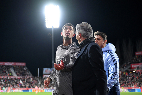 来源:直播车12-08 16:15直播车讯在北京时间12月8日凌晨结束的西甲第16轮一场焦点战中,皇马客场3-0力挫赫罗纳,少赛1场落后榜首的巴萨2分。不过尽管皇马客场大胜,主帅安切洛蒂却笑不出来。因为此役贝林厄姆、门迪和恩德里克,先后因伤离场,让本就伤病满营的皇马更加雪上加霜。