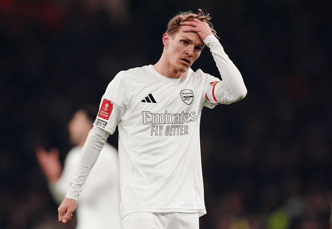 当时哈弗茨依靠“跳水”骗到点球的机会,因为足总杯直到半决赛前都没有VAR,这让阿森纳成功获利。但令人匪夷所思的是,队长厄德高却离谱罚丢。