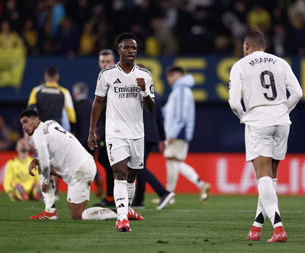 来源:直播车03-16 16:56直播车讯在北京时间3月16日凌晨结束的西甲第28轮一场焦点战中,皇马在客场2-1逆转比利亚雷亚尔,联赛2连胜后积分超越少赛2场的巴萨3分,暂时登顶积分榜。这也是皇马不到3天内,双线赢下的第2场硬仗。当终场哨响后,皇马群星都显得十分疲惫。