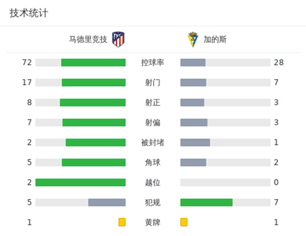 第12分钟,加的斯前场反抢后就地反击,克里斯-拉莫斯右路横传门前,卢卡斯-皮雷斯后点包抄推射入网,马竞0-1落后↓