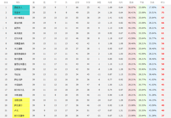 相比之下,武磊旧帅加耶戈则雪崩了,他率领的希洪竞技最近直接崩盘,有跌出前六的趋势,本轮输球之后只有61个积分,仅仅以微弱的净胜球优势力压同样61分的巴列卡诺暂列第6名,希洪竞技最近的雪崩是连续性的,进入4月开始只赢下一场,6场不胜2平4负,一路从积分榜第4名掉了下来,冲甲形势相当不乐观,球队过于依赖久尔杰维奇一人得分,他本赛季狂轰21球,与德托马斯竞争金靴,但是其他人进球最多的只有3球,这是加耶戈带队出现后劲不足的根本原因,阵容体系太极端。