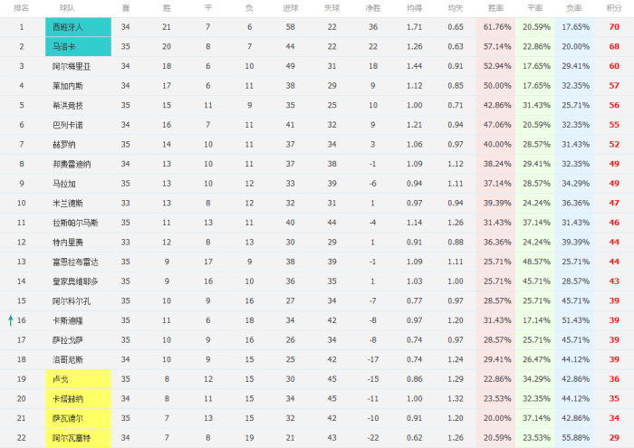 输球之后,作为西班牙人争冠死敌的马略卡开始在积分榜刹车,积分停在68分,而且近期战绩总体糟糕,出现了雪崩的情况,最近8轮西乙,马略卡只赢下了3场,输掉了3场,战平2场,等于是8轮比赛丢掉了10个联赛积分,也正是这10个积分让西班牙人实现了反超和领跑西乙积分榜。