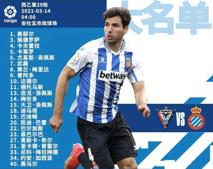 面对如此关键的赛程,武磊雪崩则要继续了,他大概率会连续19场坐在西乙替补席。北京时间3月14日凌晨4:00,西班牙人对阵米兰德斯,比赛大名单已经浮现,武磊常规入选,但是德托马斯彻底伤愈,迪马塔、普阿多也继续入选,其中普阿多拿到了西班牙人队内2月的MVP,首发位置稳固,迪马塔则与武磊竞争一个替补出场的机会,使得武磊最多只有个位数的出场时间,上一轮只踢了5分钟,处境相当尴尬。