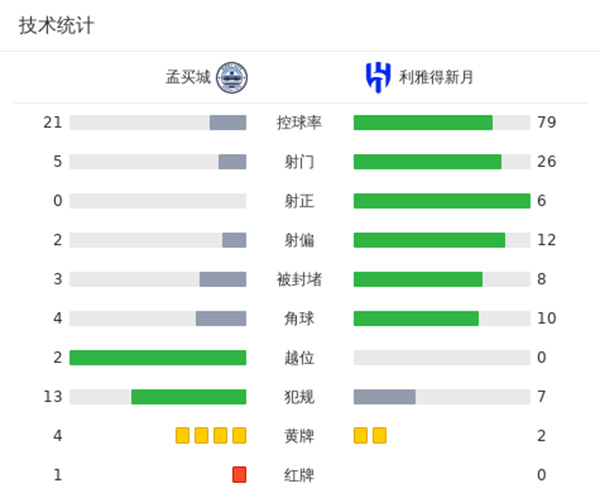 来源:直播车11-07 04:06 直播车讯 :北京时间11月6日22:00,亚冠小组赛第4轮,孟买城主场对阵利雅得新月。上半场,双方均无建树;下半场,梅赫塔布染红,迈克尔、米特罗维奇先后破门,最终,利雅得新月客场2-0取胜。