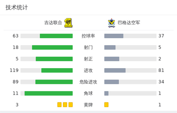 第93分钟,坎特前场右路传中,哈姆达拉禁区内停球低射打进绝杀,吉达联合1-0巴格达空军。