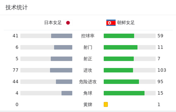 最终全场比赛结束,日本女足4-1朝鲜女足。