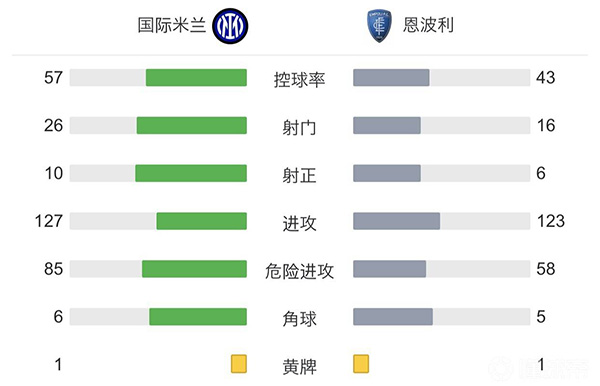 第13分钟,邓弗里斯右路传中,桑切斯头球攻门将球顶进,国际米兰1-0恩波利。
