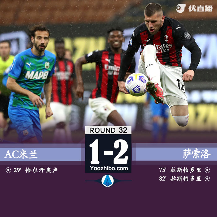 直播车4月22日讯 北京时间4月22日00:30,意甲联赛第32轮AC米兰主场面对萨索洛。上半场比赛,莱奥多次杀入禁区获良机,恰尔汗奥卢右脚兜射破门,达洛特贡献关键解围,半场比分为1-0。下半场比赛,萨索洛替补上场的拉斯帕多里扳平比分,并且打入制胜一球。全场比赛战罢,米兰主场1-2萨索洛。