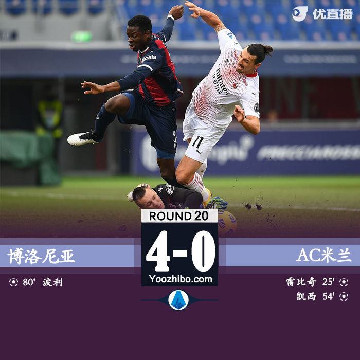 直播车1月30日讯 北京时间1月30日晚22点整,2020-21赛季意甲第20轮在内拉托-达拉亚球场展开角逐,AC米兰客场挑战博洛尼亚。上半场伊布失点,雷比奇补射建功,下半场凯西点射扩大比分,波利面对旧主破门。最终AC米兰客场2-1战胜博洛尼亚,米兰连续17个意甲客场不败刷新纪录。积分榜方面,米兰积46分继续领跑。