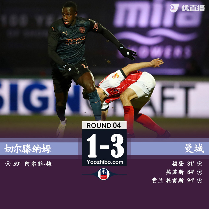 直播车1月24日讯 北京时间1月24日01:30,足总杯第4轮继续进行,曼城客场挑战英乙球队切尔滕纳姆。上半场,B-门迪的射门被托泽尔在门线上解围。下半场,阿尔菲-梅利用界外球战术打进1球,福登和热苏斯连入两球逆转比分,补时阶段费兰-托雷斯再入1球锁定胜局。最终,曼城3-1客场逆转切尔滕纳姆,顺利晋级16强。