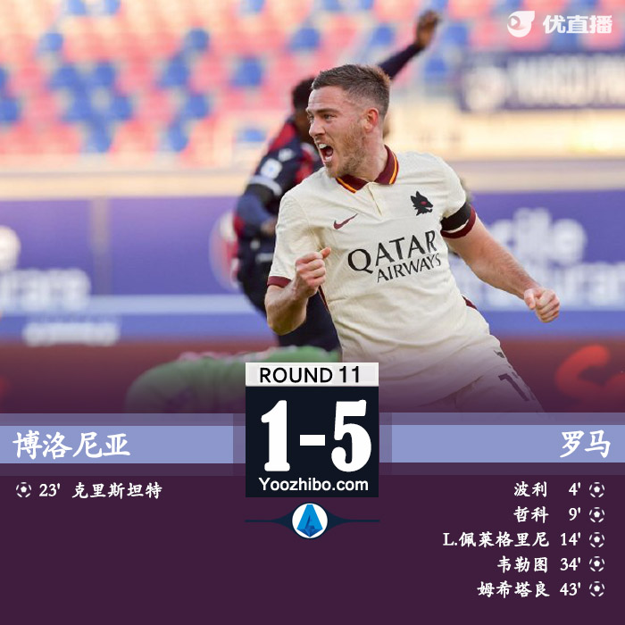 全场战罢,罗马凭借多名球员的尚佳发挥,客场5-1战胜博洛尼亚。