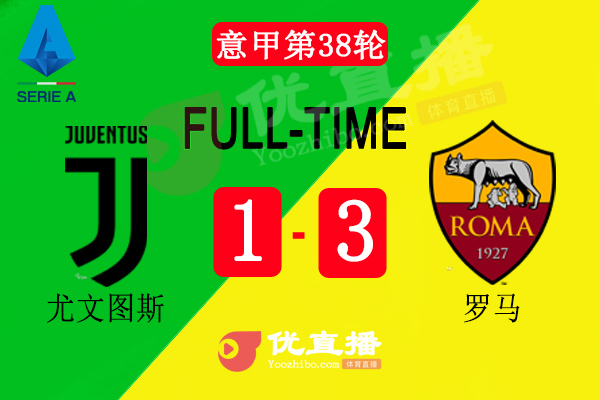 直播车讯 北京时间8月2日凌晨2:45,2019-2020赛季意甲第38轮继续进行,尤文主场迎战罗马。上半时比赛伊瓜因首开纪录,随后卡利尼奇与佩罗蒂连入两球帮助罗马反超。下半时比赛扎尼奥洛助攻佩罗蒂再下一城扩大比分。最终,尤文主场1-3被罗马逆转,以83分的成绩收官,罗马则以70分获得联赛第五名。