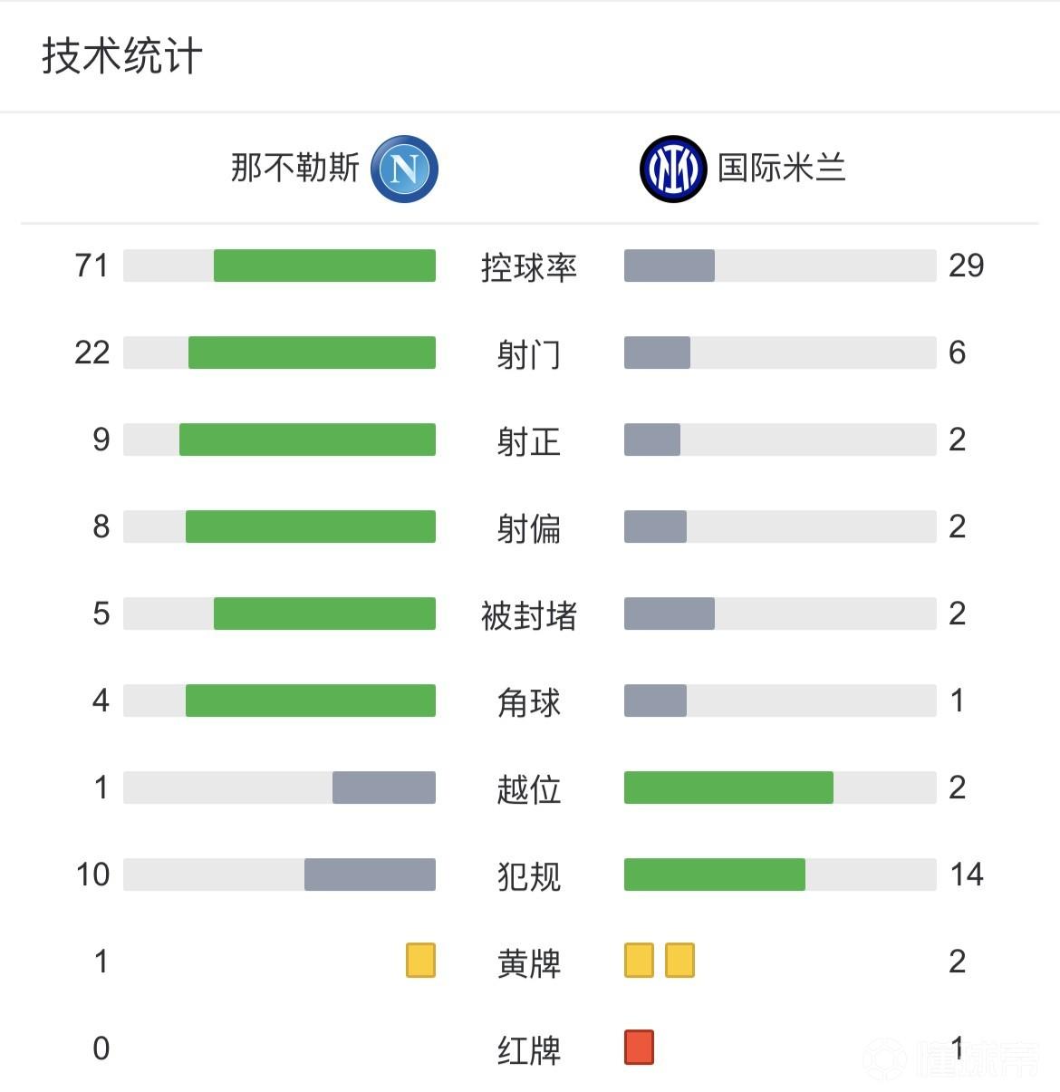 国米1-3那不勒斯 佳丽染红国米八连胜遭终结