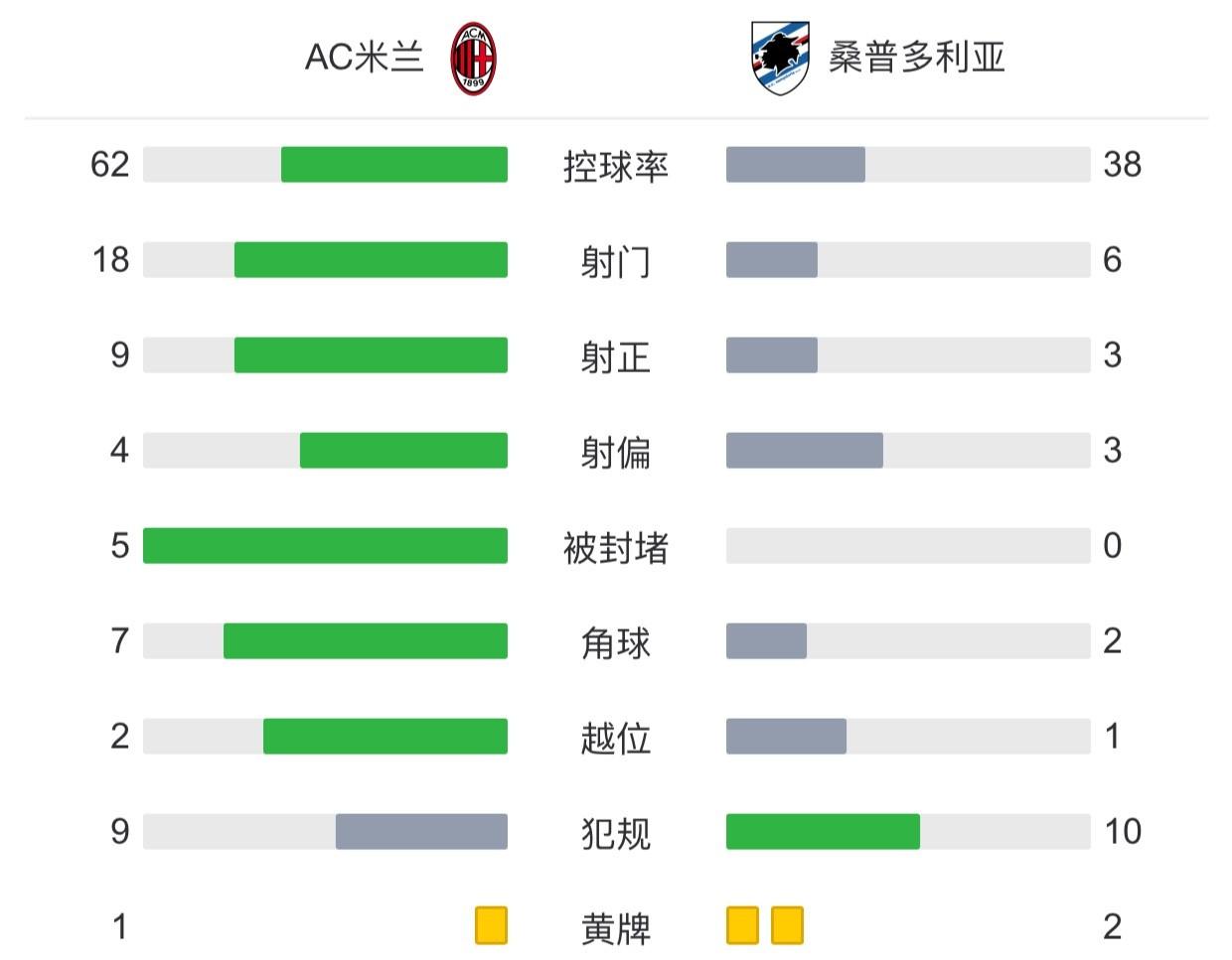 第9分钟,迪亚斯挑传,莱奥获得单刀球机会,他选择右脚推射,这球拉瓦利亚无能为力,AC米兰1-0桑普多利亚。
