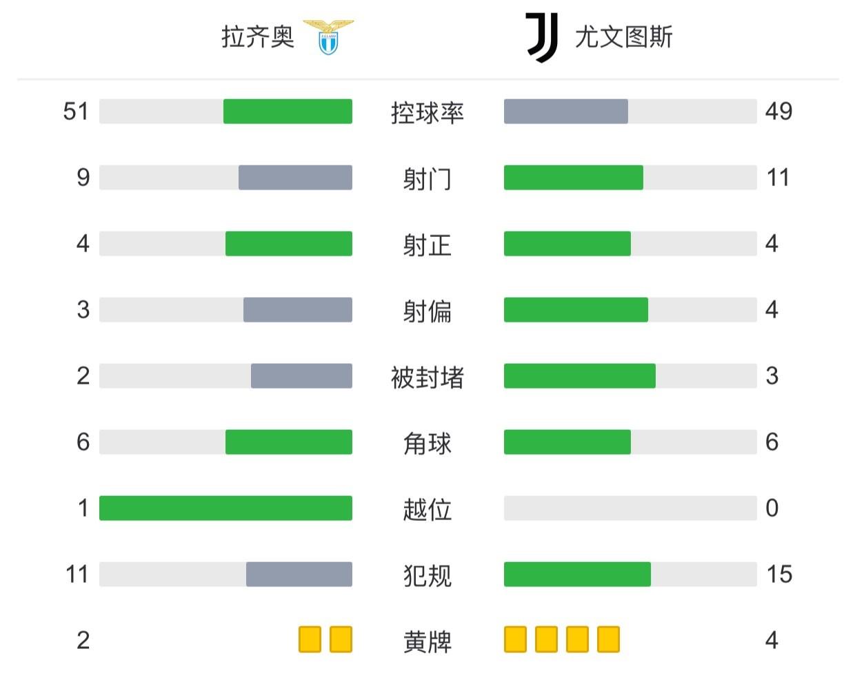 最终尤文客场1-2拉齐奥联赛三连胜终结。