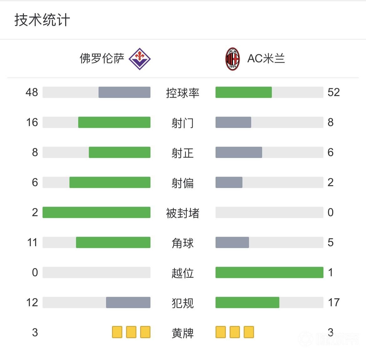 全场比赛结束,AC米兰1-2佛罗伦萨,四连胜被终结!