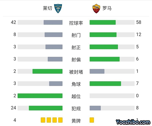 全场比赛结束,最终罗马1-1莱切!
