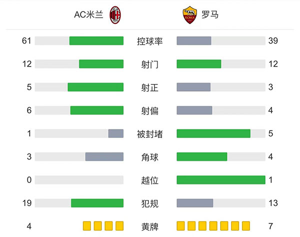 全场比赛结束,最终AC米兰主场2-2遭罗马绝平。
