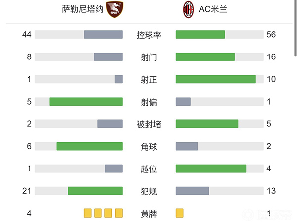 全场比赛结束,最终米兰2-1战胜萨勒尼塔纳取得胜利。