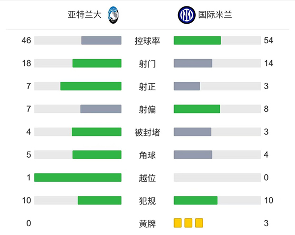 全场比赛结束,国米3-2逆转亚特兰大。