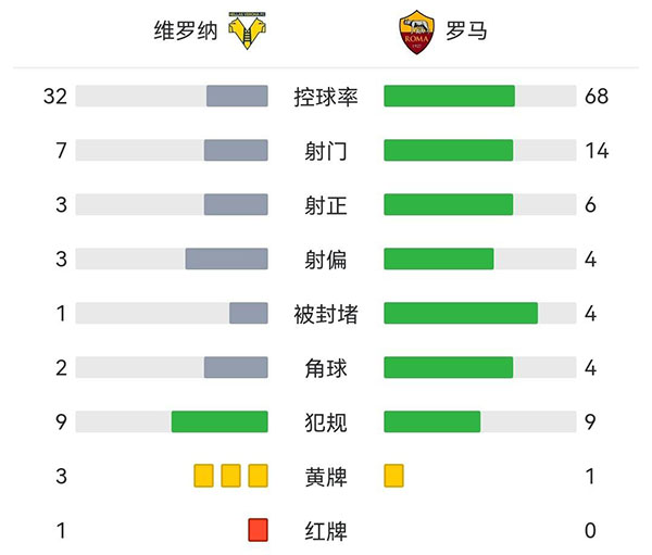 全场比赛结束,最终罗马2-1绝杀维罗纳。