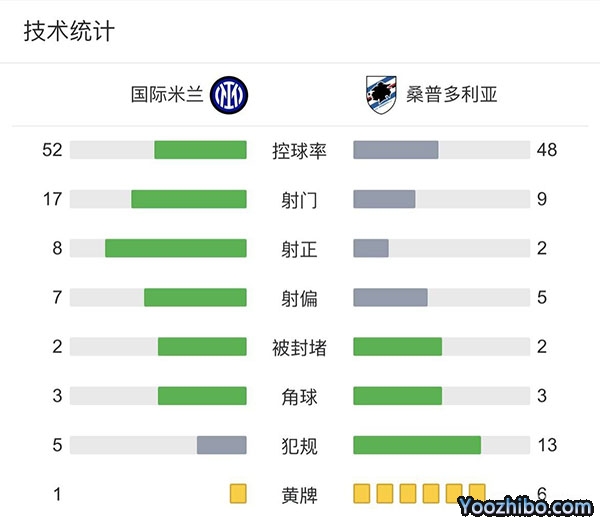 全场比赛结束,国际米兰主场3-0完胜桑普多利亚。