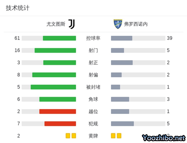 全场比赛结束,尤文3-2弗洛西诺内。