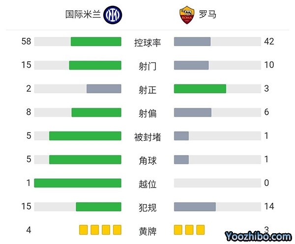 全场比赛结束,罗马2-1国际米兰。